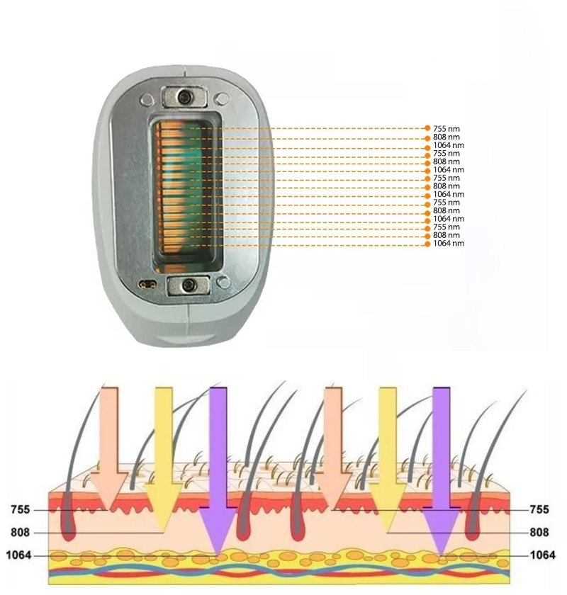 The wavelengths of 1064nm have the deepest hair follicle penetration rate and can therefore be used particularly effectively for the removal of deep-lying, firmly anchored hairs.